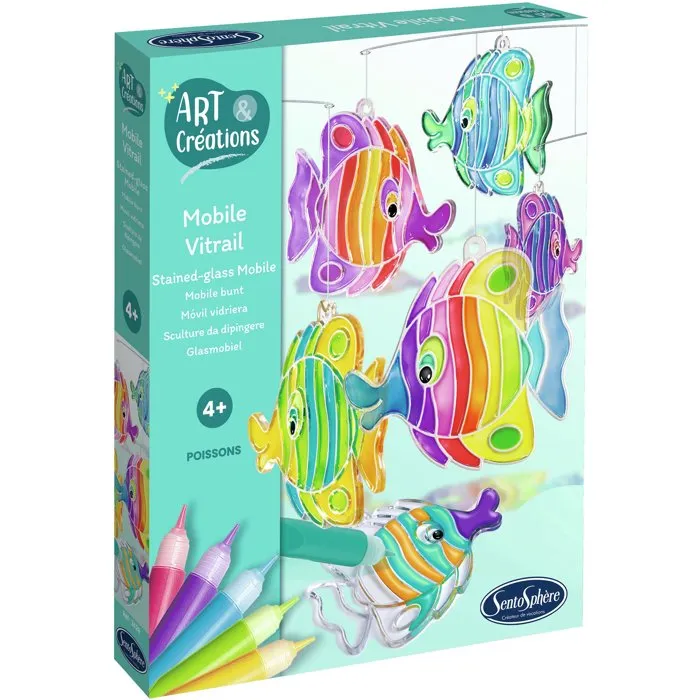 Sentosphere - Art & Créations Mobile Vitrail Poissons - Activité Créative Facile et Décorative - Kit Loisir Enfant dès 4 ans