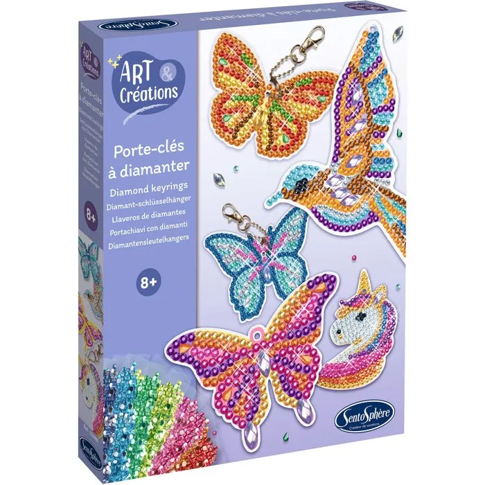 Sentosphere - Kit Créatif Porte-Clés Diamant Painting - 5 Supports avec Strass Multicolores et Attaches - Art & Créations - À partir de 8 ans