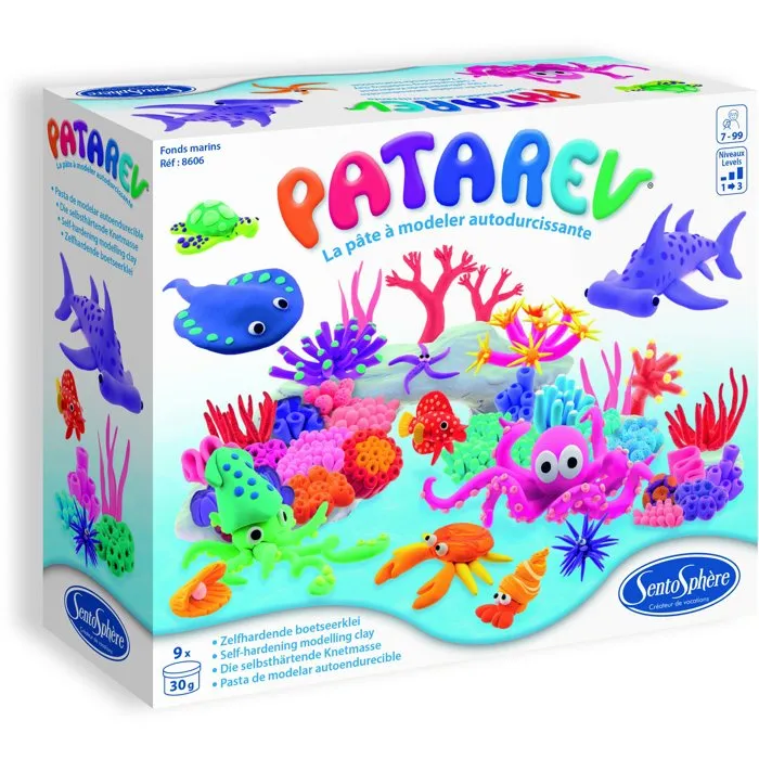 Sentosphere Patarev - Pâte à modeler autodurcissante - Coffret Fonds Marins avec 9 couleurs vives - À partir de 7 ans