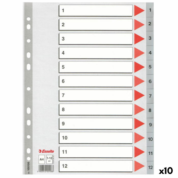 Séparateurs Esselte Numéroté Gris A4 12 Volets (10 Unités)