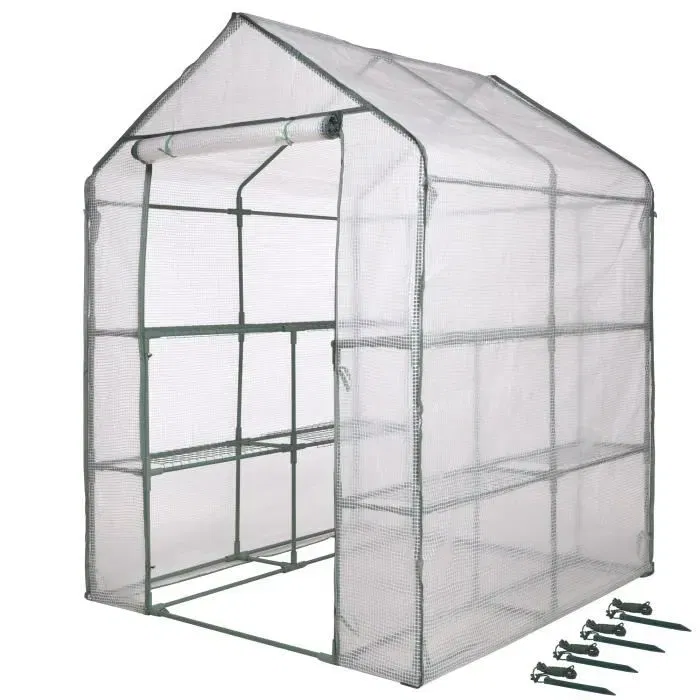 Serre de jardin livrée avec 2 étageres 2 niveaux - tube vert Ø16 mm, PE armé 140 g/m² - H195 x 143 x 143 cm 2,0 m²