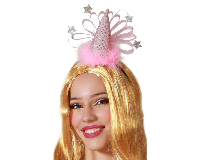 Diadème de fête Carnaval Femme Adulte avec plumes et décor étoilé, idéal pour anniversaire et thème féerique en rose