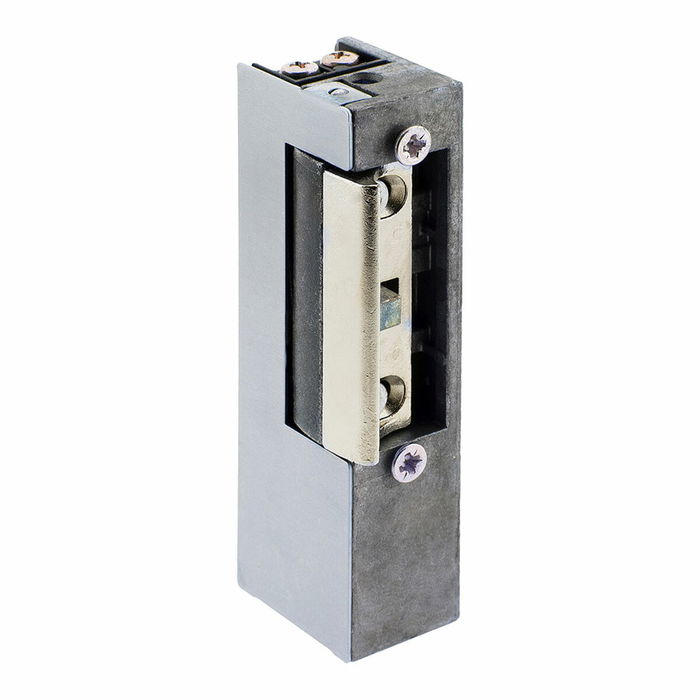 Serrure Jis 12 voltes 832-901g têtière grise - Ouverture automatique. - Verrouillage électrique par portes en aluminium. - Têtière carrée.