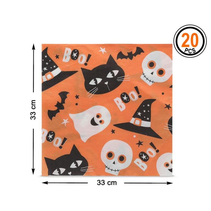Serviettes de table Halloween 33x33 cm, lot de 20 pièces orange - Idéal pour fêtes et décoration