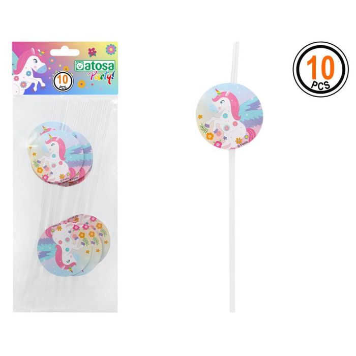 Set de 10 Pailles Licorne Multicolores avec Décoration - 10 cm