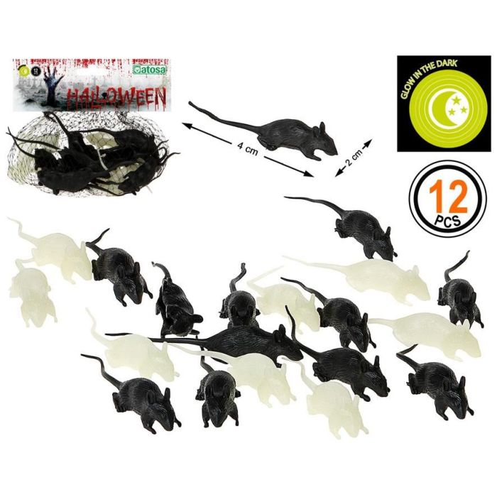Set de 12 Souris Décoratives Fluorescentes pour Halloween, 4 cm, Couleur Noire, Brillent dans le Noir