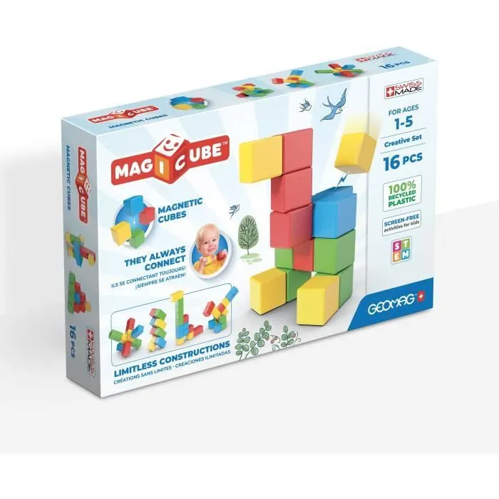 Geomag - Jeu de construction Magicube Creative Set - 16 cubes magnétiques colorés en plastique recyclé - Jouet éducatif et écologique pour enfants de 1 à 5 ans