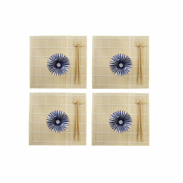 Set de sushi DKD Home Decor 14,5 x 14,5 x 31 cm Bleu Blanc Grès Oriental (16 Pièces)