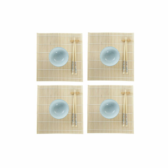 Set de sushi DKD Home Decor 14,5 x 14,5 x 31 cm Bleu Blanc Grès Oriental (16 Pièces)