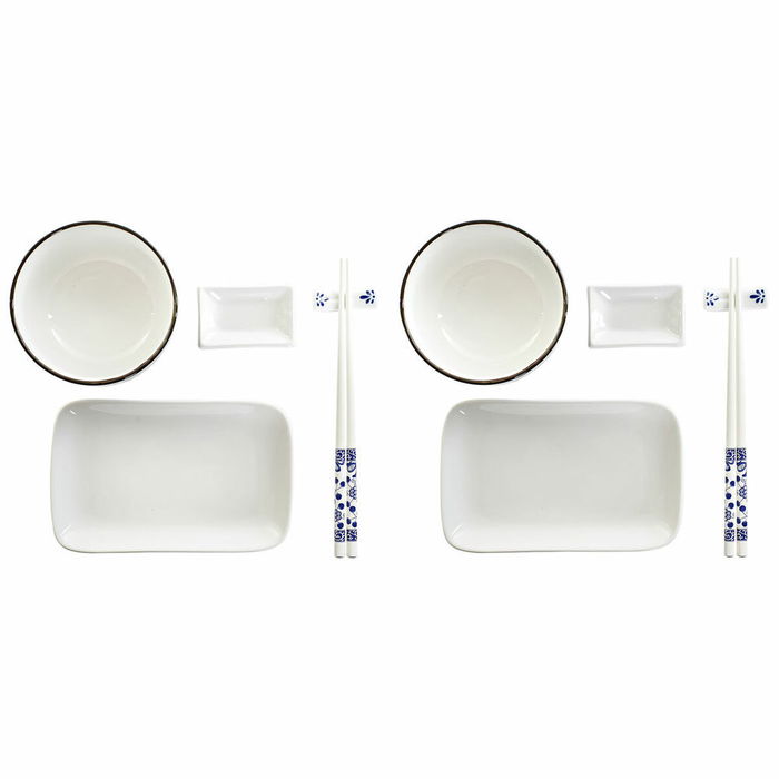 Set de sushi DKD Home Decor 33,5 x 34,5 x 9 cm Porcelaine Blanc Blue marine Oriental (33,5 x 34,5 x 9 cm)