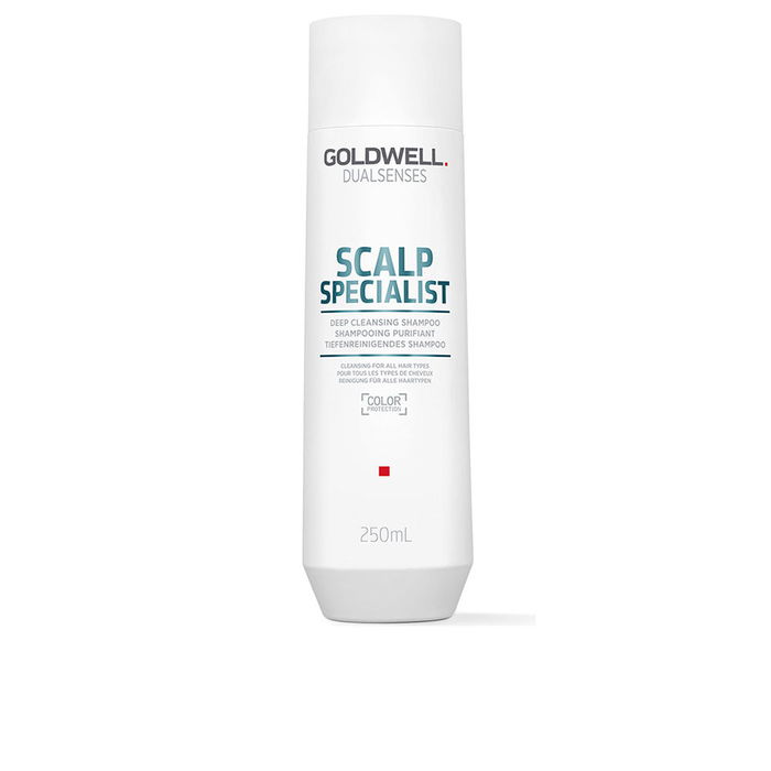 Shampooing purifiant SCALP SPECIALIST de Goldwell, spécialement formulé pour les cuirs chevelus sensibles et les cheveux affaiblis. Apporte une agréable sensation de fraîcheur au cuir chevelu tout en éliminant efficacement les impuretés des produits coiffants, l'excès de sébum et les résidus de chlore.