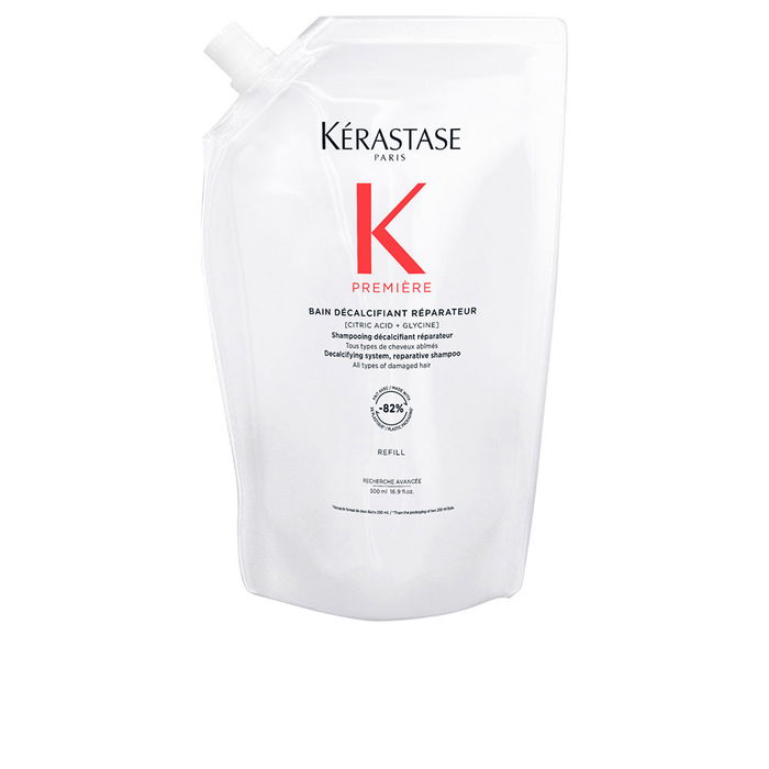 Le shampoing réparateur détartrant PREMIERE de KERASTASE, aussi connu sous le nom de Bain Décadcifiant Réparateur, est spécialement formulé pour revitaliser les cheveux endommagés. Sa formule riche en acides purs cible l'accumulation de calcium, un facteur contributif à la casse des cheveux, tout en reconnectant les liaisons kératiniques fragilisées*. Pour une action optimale, il est recommandé de l'utiliser avec le Concentré Décadcifiant Ultra-Réparateur.