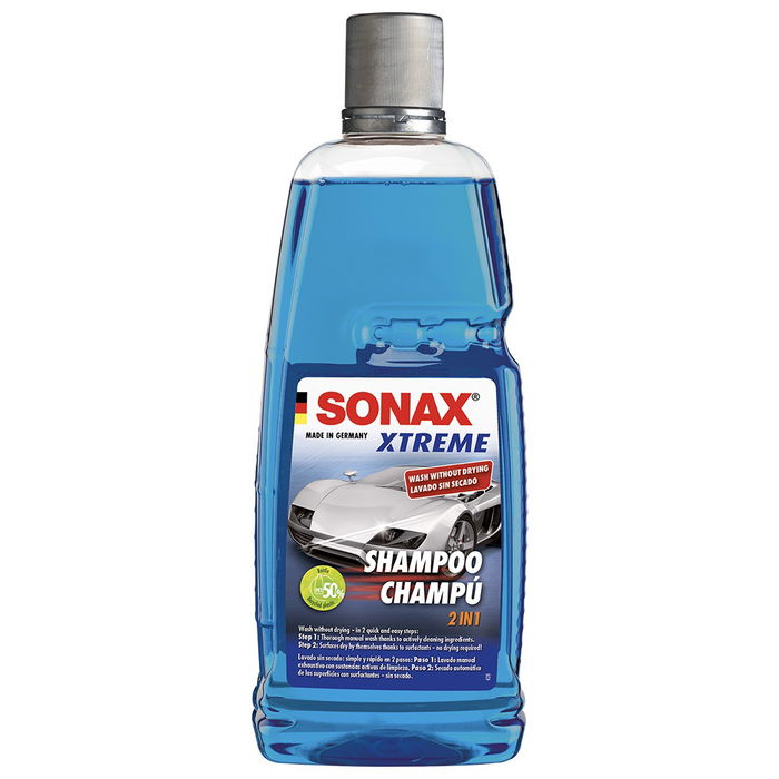 SONAX XTREME Laver & Sècher est un shampooing qui facilite encore plus le lavage de la voiture. Le shampooing SONAX XTREME pour voitures sèche tout seul, sans laisser de taches ni de rayures. Cela laisse non seulement votre voiture impeccable, mais vous fait également gagner considérablement plus de temps car il n'est pas nécessaire de nettoyer la voiture avec une serpillière.