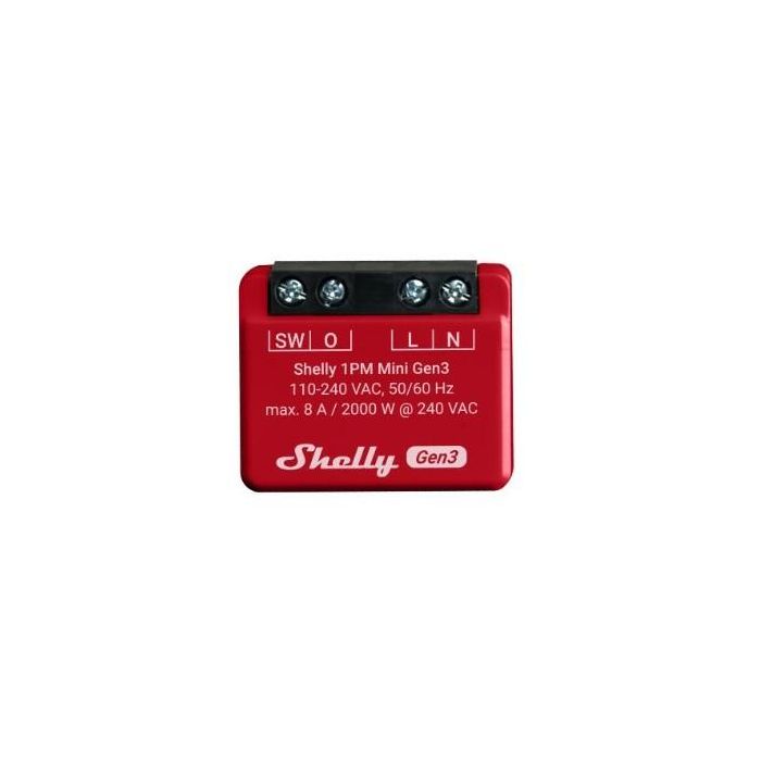 Shelly 1PM Mini Gen3, Commutateur intelligent, 1P, Sans fil, Plastique, Mat, 20 dBmW