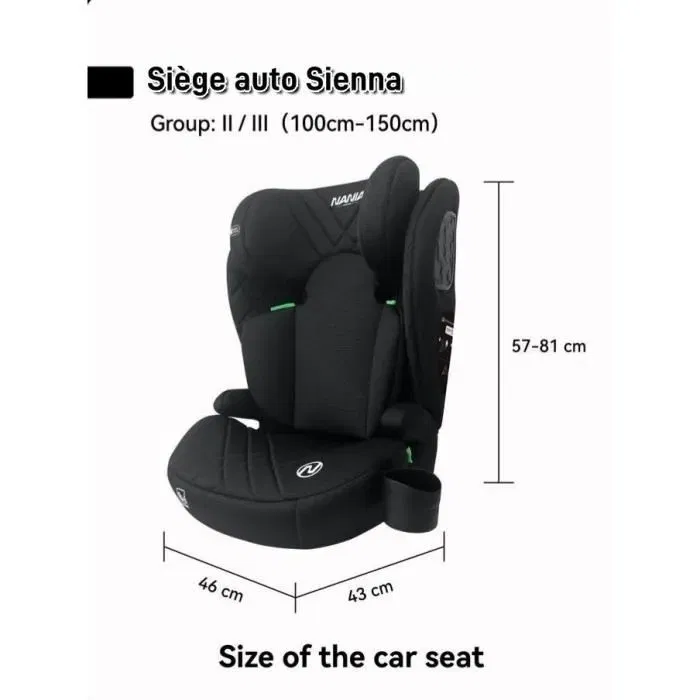 Nania Sienna Siège Auto Enfant Réhausseur Groupe 2/3 (15-36 kg) i-Size R129 Noir avec Systèmes de Sécurité SPS et Head-Protect - Installation Ceinture 3 Points Universelle