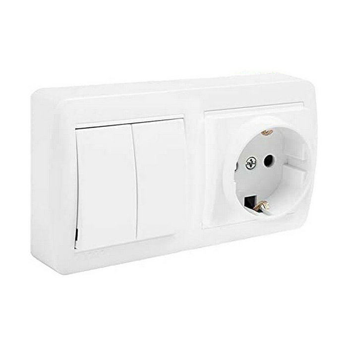 Socle de prise Solera mur36u Schuko Bipolaire Double Interrupteur/Commutateur Obturateur Blanc Surface 16 A