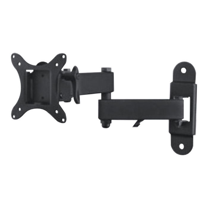 Este soporte de TV de doble brazo es perfecto para pantallas de 13 a 27 pulgadas, ofreciendo una solución versátil y robusta para su salón, dormitorio o oficina. Fabricado en hierro con un acabado en color negro, combina durabilidad y un diseño discreto que se integra fácilmente en cualquier entorno.
