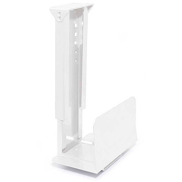 Ce support vertical pour unité centrale est réglable en hauteur et en profondeur pour une installation sous le plateau de bureau.