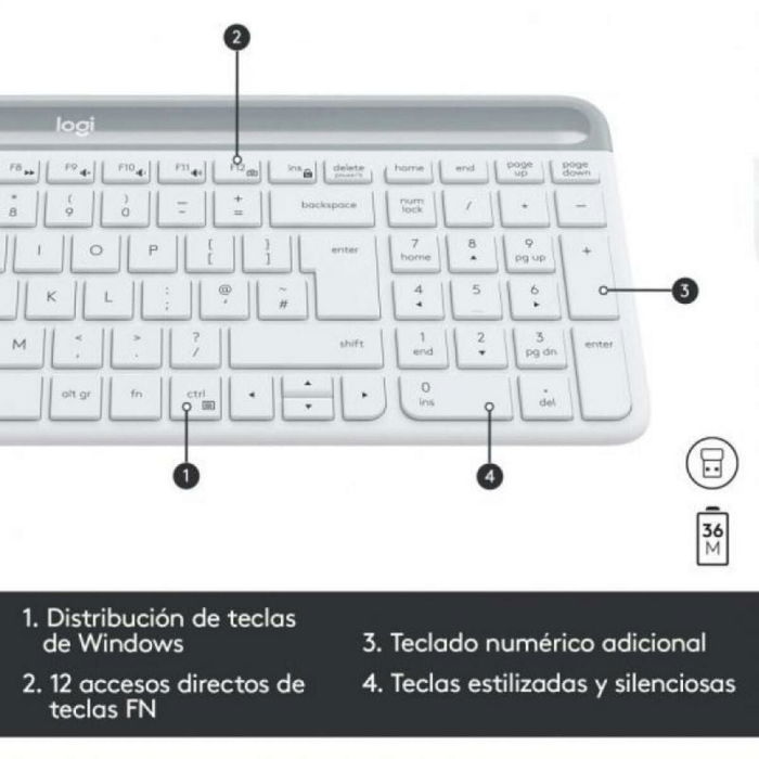 Le clavier et souris Logitech 920-009199 est un ensemble conçu pour offrir une expérience complète et confortable en environnement de bureau et usage quotidien. Cet ensemble sans fil comprend un clavier au format complet (100%) avec pavé numérique, idéal pour les tâches nécessitant une saisie rapide de données et une navigation efficace entre les fonctions. Son design blanc apporte une finition moderne qui s’intègre facilement dans tout espace de travail. La connectivité repose sur la technologie RF sans fil, assurant une connexion stable et sans câble, offrant plus de liberté de mouvement et moins d’interférences comparé à d’autres technologies sans fil. Le clavier présente un style droit et est configuré en disposition QWERTY espagnole, adaptée aux utilisateurs hispanophones, facilitant l’accès aux caractères spéciaux et symboles propres à la langue. La souris incluse complète l’ergonomie, offrant précision et confort pour les tâches quotidiennes. La combinaison de ces éléments via un récepteur USB garantit une installation simple et rapide sur la plupart des ordinateurs. La durabilité et la facilité d’utilisation font de ce kit un outil fonctionnel et efficace pour les professionnels recherchant une performance fiable sans compromettre l’esthétique ni le confort. En résumé, cet ensemble Logitech constitue une solution pratique et polyvalente pour des flux de travail exigeants nécessitant une réponse sans fil et un design soigné.