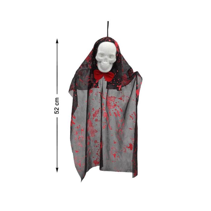 Squelette Suspendu Avec Cape Noire Ensanglantée et Nœud Papillon Rouge 52 cm - Décor Halloween Gothique et Effrayante