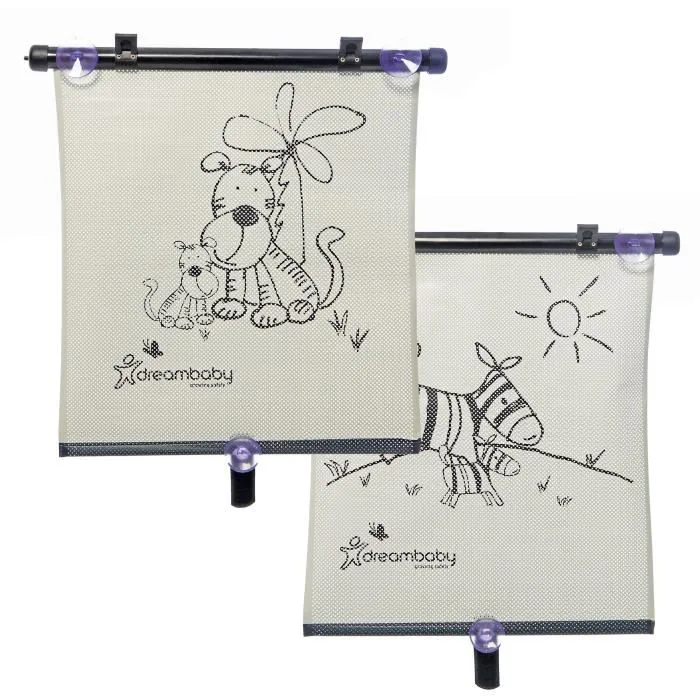 Dreambaby - Store enrouleur de fenêtre de voiture Double face - Imprimé Zèbre et Tigre - Protection UV - Réglable - Lot de 2 pièces