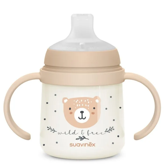 Suavinex Biberon Night&Day Wild&Free 150 ml avec Anses et Bec en Silicone Doux - À partir de 6 mois - Marron