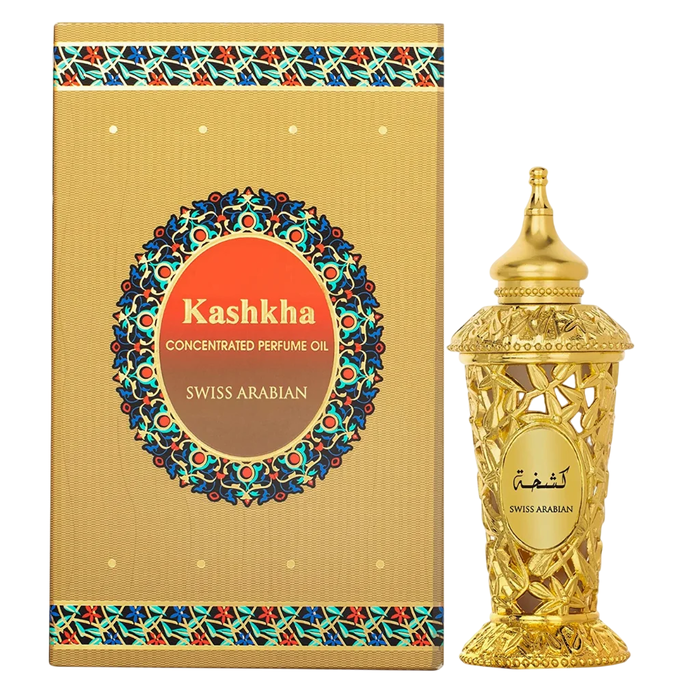 Huile de parfum Kashkha par Swiss Arabian, une fragrance dédiée aux femmes. Ce parfum se présente dans un flacon de 20 ml pour une application précise et concentrée.