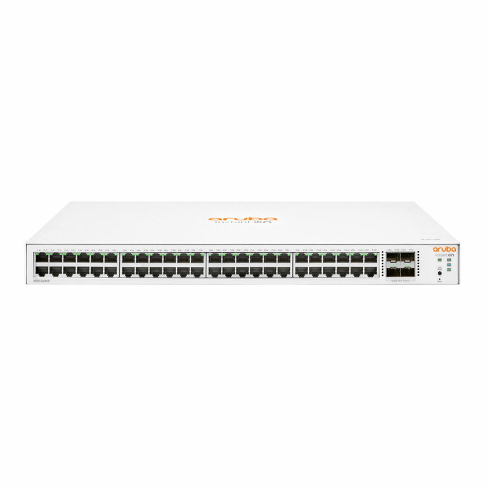 Le Aruba Instant On 1830 de HPE est un switch haute performance conçu pour les environnements professionnels nécessitant une connectivité robuste et une gestion flexible. Ce modèle dispose de 48 ports RJ-45 autosensing 10/100/1000 Mbps, compatibles avec les normes IEEE 802.3 pour réseaux Ethernet cuivre, avec négociation automatique des modes Half et Full duplex selon la vitesse, assurant une connexion efficace et adaptable aux besoins du réseau. Il intègre également 4 ports SFP 1 GbE permettant la connexion par fibre optique ou modules transcepteurs, élargissant les options pour des liens à haute vitesse et l’intégration d’infrastructures multimode ou monomode, avec une portée pouvant atteindre 10 km selon le transcepteur utilisé. Son processeur ARM Cortex-A9 à 800 MHz, associé à 512 Mo de SDRAM et 256 Mo de mémoire flash, offre des performances solides pour gérer un trafic jusqu’à 104 Gbps et une capacité de commutation de 77,37 Mpps, avec une latence ultra faible inférieure à 2,8 microsecondes en gigabit, idéal pour les applications exigeantes et les environnements professionnels demandant haute disponibilité et performance constante. L’appareil supporte une table d’adresses MAC jusqu’à 16 000 entrées, permettant une gestion efficace de multiples dispositifs réseau sans perte de performance. Ce switch est conçu pour un montage en rack EIA 19 pouces avec des dimensions de 443 mm de large, 253 mm de profondeur et 43,9 mm de haut, et pèse 3,54 kg, facilitant son intégration dans des armoires ou racks standards ; il offre aussi une installation sur bureau ou murale grâce aux supports inclus, démontrant sa polyvalence physique. Côté alimentation, il fonctionne avec une alimentation interne compatible avec des tensions de 100-127 V et 200-240 V AC, avec une consommation en veille de 17,7 W, contribuant à l’efficacité énergétique en milieu professionnel. La gestion des appareils peut se faire intuitivement via la plateforme Aruba Instant On dans le cloud, une interface web ou via SNMP, permettant un contrôle à distance, une surveillance et une configuration avancée sans difficulté. En résumé, le Aruba Instant On 1830 est une solution de connectivité évolutive, efficace et fiable, destinée aux petites et moyennes entreprises souhaitant optimiser leur infrastructure réseau avec une technologie avancée et une gestion simple.