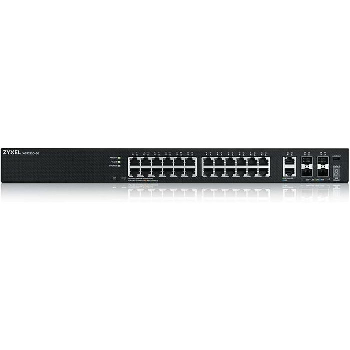 Le Zyxel XGS2220-30 est un switch manageable de couche 3 conçu pour les environnements professionnels nécessitant une grande capacité et flexibilité dans la gestion des réseaux. Ce modèle intègre 24 ports RJ45 Gigabit Ethernet (10/100/1000 Mbps), offrant une connectivité fiable et rapide pour plusieurs appareils simultanément, complété par 4 modules SFP+ permettant des connexions fibre optique haut débit pour étendre la portée et améliorer l’efficacité du réseau. Sa robuste table d’adresses MAC avec une capacité de 32 000 entrées facilite une gestion avancée du trafic, destinée à optimiser la segmentation et la sécurité interne du réseau via des protocoles standards tels que IEEE 802.1Q (VLAN), 802.1p (QoS), 802.1x (sécurité d’accès) et d’autres protocoles Ethernet garantissant interopérabilité et contrôle des performances des données. Avec une capacité de commutation de 168 Gbit/s, ce switch assure des opérations sans congestion et une transmission rapide, idéal pour les réseaux demandant une large bande passante, comme bureaux, centres de données moyens ou installations multimédia. Il présente un design compact de couleur noir et est prêt pour le montage en rack, facilitant son intégration dans les infrastructures existantes. De plus, le XGS2220-30 supporte des fonctions avancées d’administration et de sécurité, adaptées aux professionnels IT nécessitant un contrôle précis et une évolutivité. En résumé, le Zyxel XGS2220-30 est une solution de commutation efficace et polyvalente, adaptée aux réseaux d’entreprise exigeant haute vitesse, gestion complète et fiabilité dans leur infrastructure de communication.