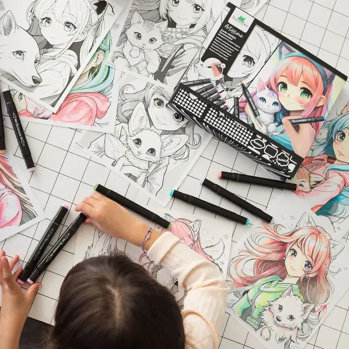 - Modèles: 10 marqueurs à alcool - Papier spécifiques - Illustrations Manga-Joli coffret à conserver pour ranger ou offrir ses créations