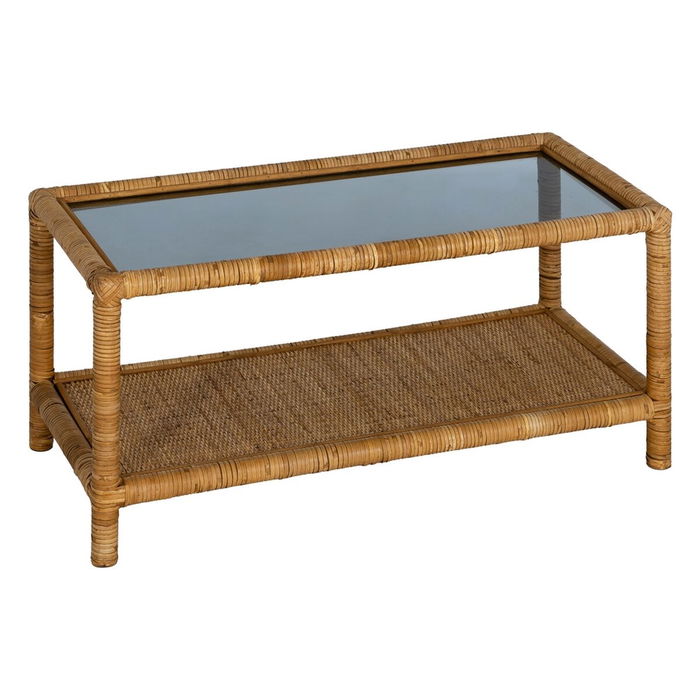 Table Basse Beige Verre Rotin 90 x 40 x 42 cm