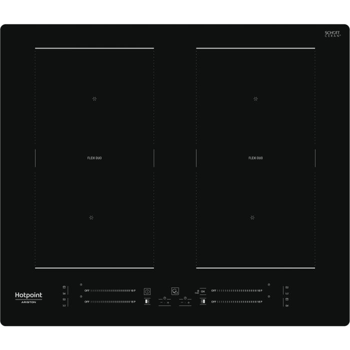 - Configuration: Largeur : 60 cm Induction 4 foyers - 4 boosters Double Flexi Duo Accès direct par foyer par slider Fonctions automatiques Indicateurs de chaleur résiduelle et de casserole mal positionnée ou manquante Régulation électronique de la température