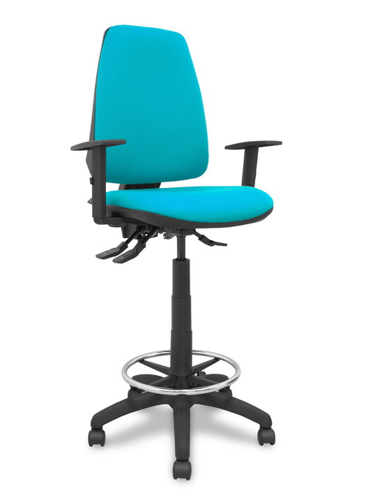 Tabouret Taburete Elche Asynchrone Tissu Turquoise Structure polyamide noire Accoudoir 1D Sans appui-tête Roulettes en nylon 50 mm