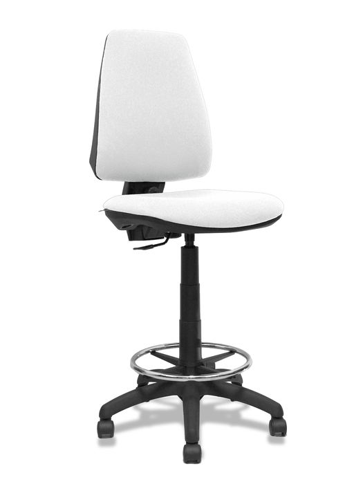 Tabouret Taburete Elche Contact permament de base Tissu Blanc Structure polyamide noire Sans accoudoirs Sans appui-tête Roulettes en nylon 50 mm