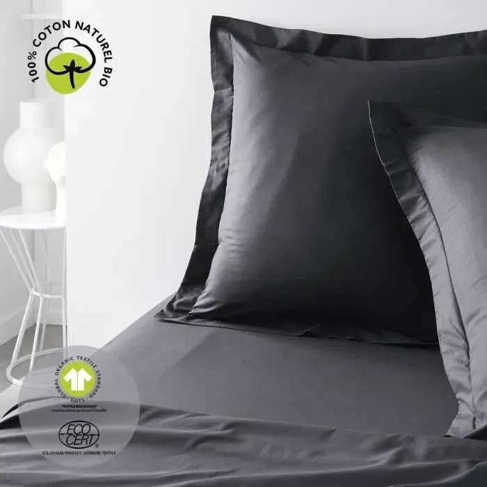 Today - Taie d'oreiller 63x63 cm en coton bio certifié Oeko-Tex et GOTS avec volant de 5 cm