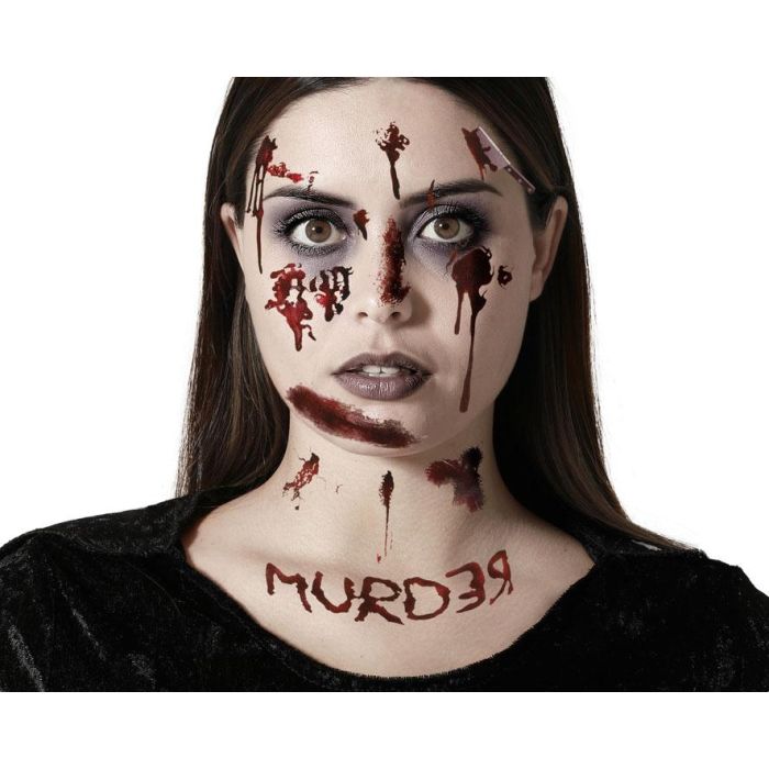 Tatuaje Facial Maquillage Effets Spéciaux Sang Blessures Mot Murder - Déguisement Halloween et Cinéma d'Horreur