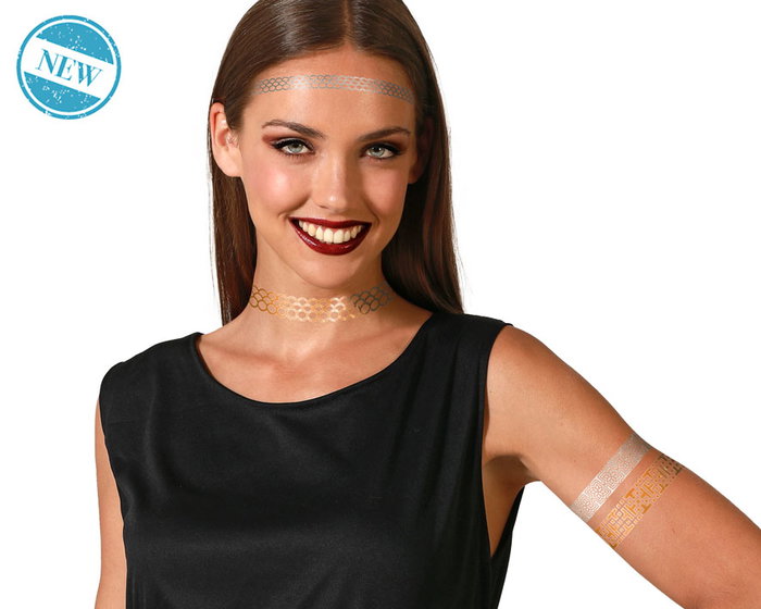 Découvrez ces tatouages temporaires de style tribal en doré et argenté. Leur design élégant et géométrique met en valeur votre peau, parfaits pour des looks sophistiqués et audacieux.