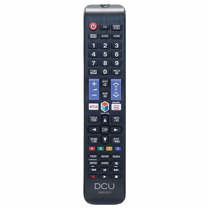 La télécommande universelle DCU Tecnologic 30901070 est conçue spécifiquement pour offrir une alternative pratique et efficace dans la gestion des téléviseurs Samsung, offrant une expérience intuitive aux utilisateurs souhaitant remplacer ou compléter la télécommande d'origine de leur téléviseur. Cette télécommande noire se distingue par sa large compatibilité avec la plupart des modèles Samsung distribués en Espagne, fonctionnant grâce à la technologie infrarouge pour garantir une communication stable et rapide avec l'appareil. Sa structure robuste favorise une utilisation quotidienne sans complications et la disposition ergonomique des boutons facilite l'accès aux fonctions clés du téléviseur, telles que le réglage du volume, le changement de chaîne ou la navigation dans les menus. Le modèle utilise des piles AAA, ce qui simplifie à la fois le remplacement et la gestion énergétique, évitant la dépendance à des formats peu courants. Le design de couleur noir apporte sobriété et s'adapte discrètement à tout type d'intérieur ou d'environnement domestique. En tant que solution universelle, cette télécommande devient un outil essentiel pour ceux qui souhaitent reprendre le contrôle de leur téléviseur facilement, sans configurations complexes ni connaissances techniques avancées, car son système est préconfiguré pour fonctionner avec les téléviseurs Samsung sans appairage supplémentaire. En résumé, la DCU Tecnologic 30901070 se distingue comme une pièce de rechange fiable et fonctionnelle, adaptée à un usage quotidien dans les foyers et les espaces nécessitant une gestion rapide et confortable du téléviseur.