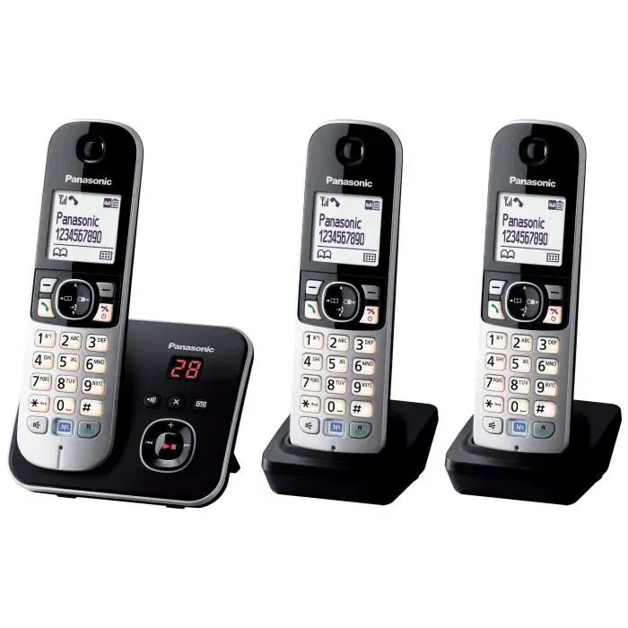 Panasonic KX-TG6823 - Téléphone sans fil DECT trio avec répondeur, réduction de bruit et blocage sélectif, combinés gris et noir