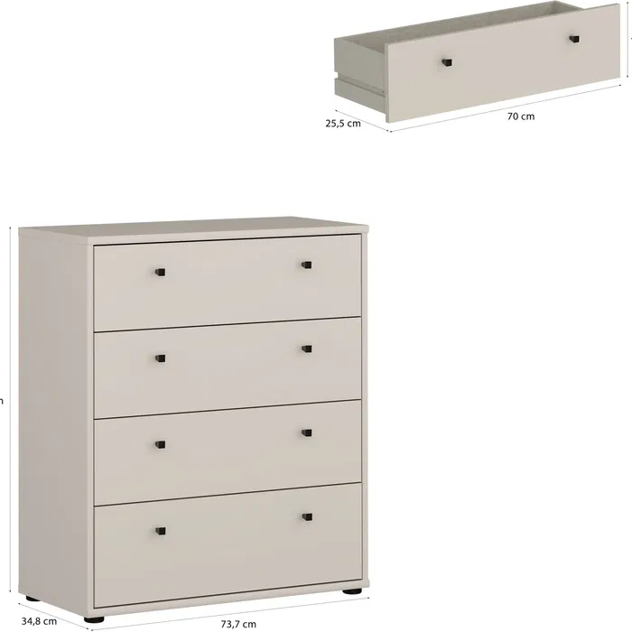 TEMPRA Commode 4 tiroirs - Couleur Sable - Design sobre - L 73,7 x P 34,8 x H 85,5 cm - Organisation chambre salon