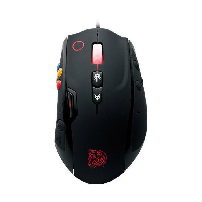 Thermaltake MO-VLS-WDLOBK-01 Souris Gamer Droitier, Laser 8200 DPI, 14 Boutons Programmables, Cable USB 1.8m, Poignées Caoutchouc, Noir