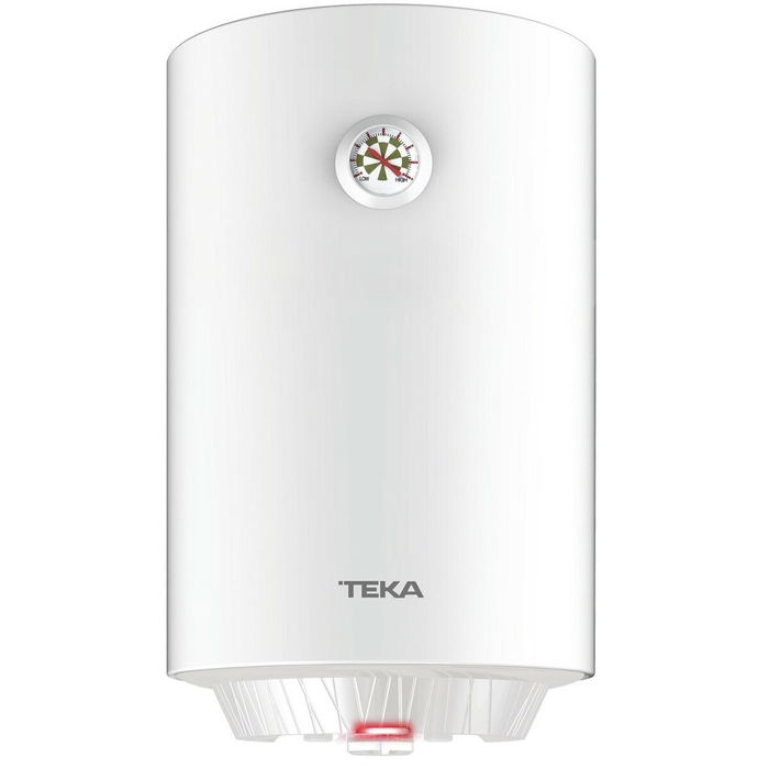 Teka EWH 30 C. Installation prise en charge: verticale, Type: Réservoir (stockage d'eau), chaudière: Système de chauffe-eau unique. Puissance max.: 1500 W, Thermostat réglable: 30 - 75 °C, Température (max): 75 °C. Tension d'entrée AC: 220 - 240 V, Fréquence d'entrée AC: 50/60 Hz, Consommation annuelle d'énergie: 577 kWh. Largeur: 340 mm, Profondeur: 340 mm, Hauteur: 602 mm