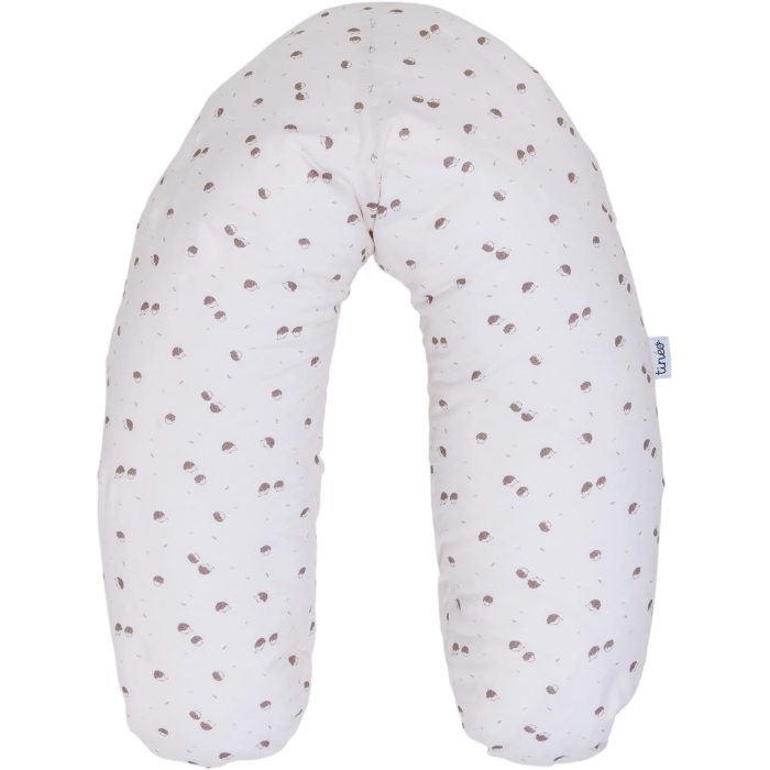 Tineo - Coussin de maternité 2-en-1 de grossesse et allaitement, en jersey de coton déhoussable écru avec motif hérissons