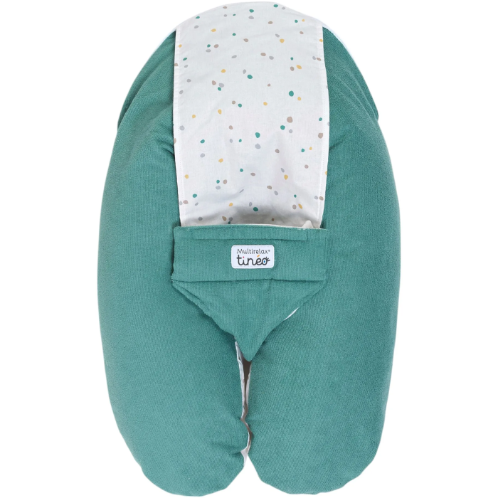 TINEO Coussin de maternité MultiRelax 3-en-1 - Tissu éponge vert pois - Grossesse, allaitement et transat bébé