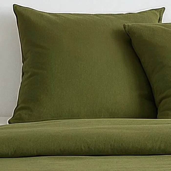 Today Essential - Parure de lit 2 personnes effet lavé vert, housse de couette 220x240 cm + 2 taies 63x63 cm, 100% polyester, facile d'entretien