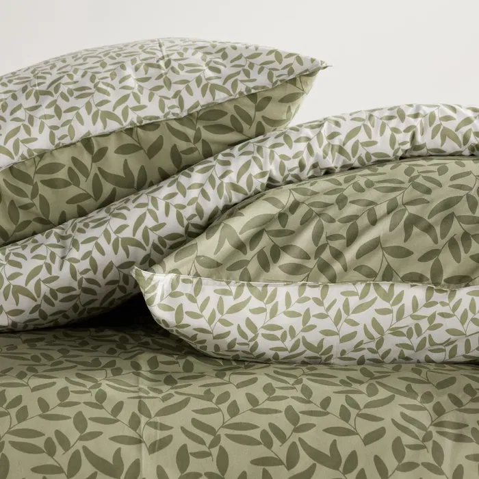 Today - Parure de lit 2 personnes Sunshine - Imprimé floral vert - Housse de couette 220x240 cm et 2 taies 63x63 cm - Coton