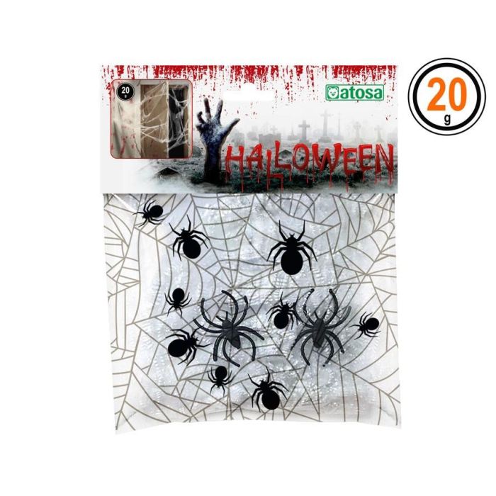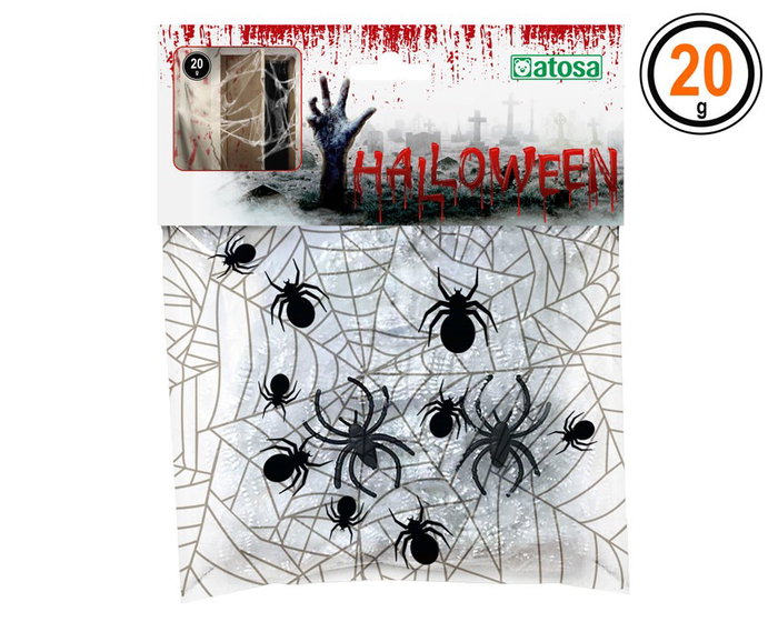 Vous organisez une fête d'Halloween à la maison ? Dans ce cas, les toiles d'araignées sont indispensables. Facile à utiliser pour décorer une porte, une fenêtre, une table, etc. Il suffit d'ouvrir le sachet, d'étendre la toile et de la placer où vous le souhaitez. Elle est de couleur blanche, comprend quelques araignées noires et pèse un total de 20 grammes.