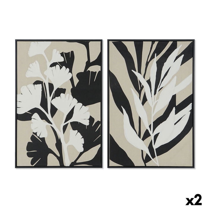 Toile Home ESPRIT Blanc Noir Beige Feuille d'une plante Urbaine 63 x 4,3 x 93 cm (2 Unités)