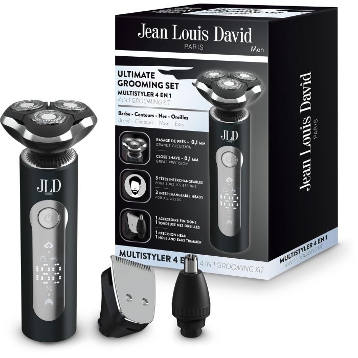 Jean Louis David JEA3666085213772 Tondeuse Multiusage Kit de Soin 4 en 1 3 Têtes Écran Digital Noir