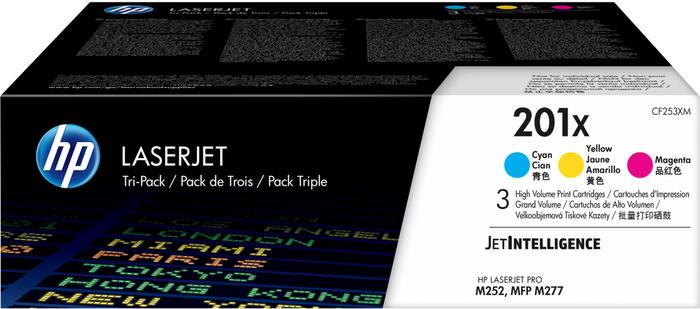 HP CF253XM Cartouche d'encre couleur Toner 201X Multipack - Cyan, Magenta, Jaune
